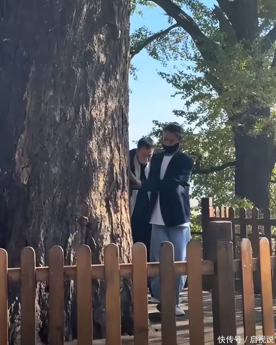 由于气温下降,辛柏青身穿深色羽绒服御寒,衣着朴素无华;相较之下,李乃文则穿着轻便,仅以白色内搭配一件薄款西装外套示人。